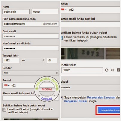 Ponsel: Masukkan nomor HP anda . ( Biasanya walau ga ada di bagian ke 2 kadang suruh veririfikasi jika muncul silahkan di isikan ya )